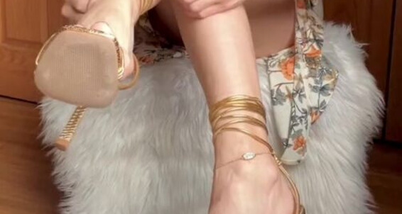 Molly Sweet Shoe Dangling Black High Heels Try On